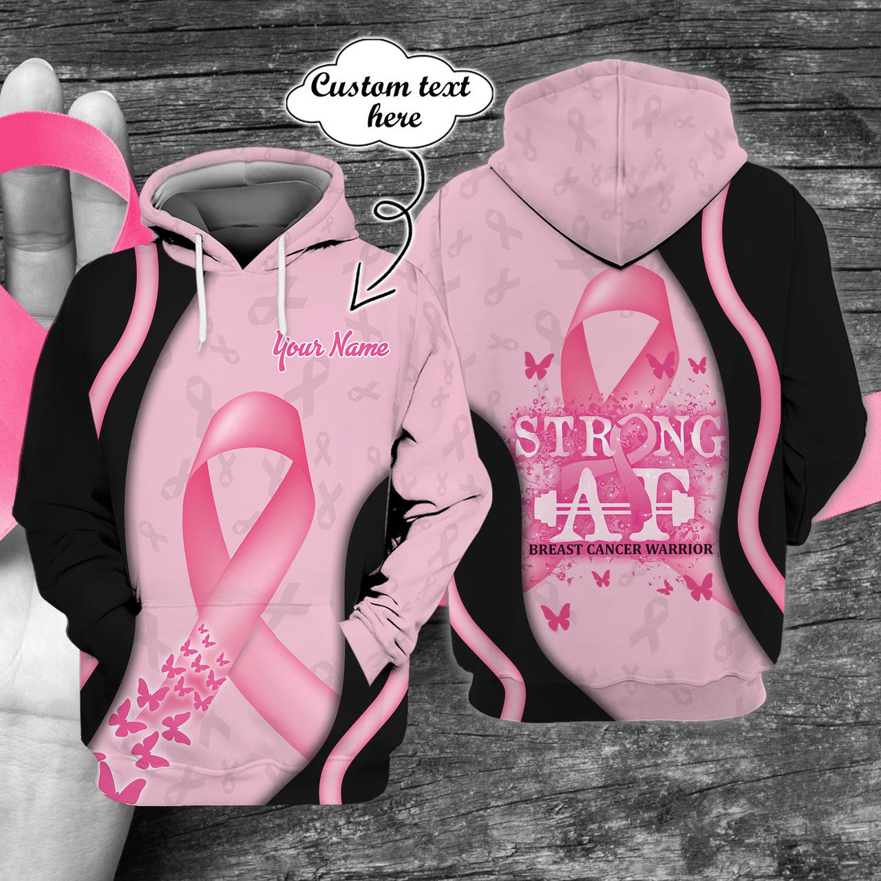 FUNSTUFFPRINT Cancer Awareness - Personalized Name Pink Riboons 3D Hoodie and Zip Hoodie