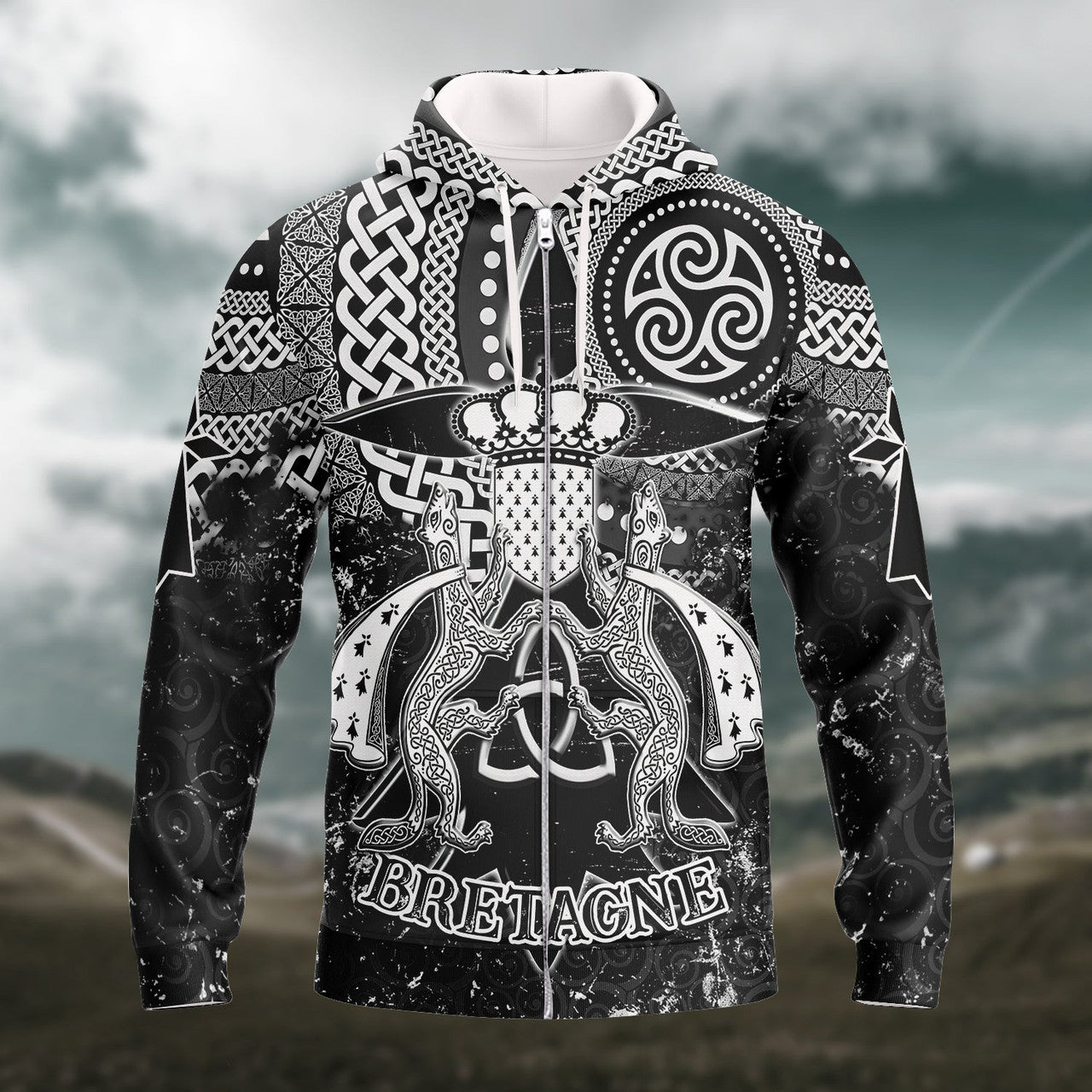 FUNSTUFFPRINT Brittany Celtic Bretagne 3D Hoodie and Zip Hoodie