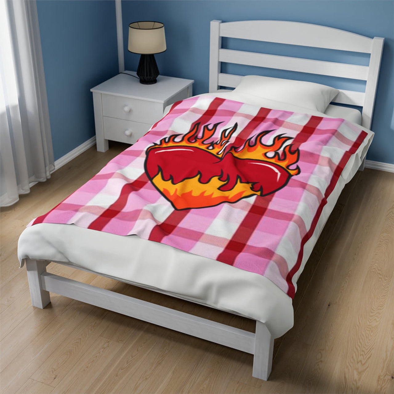 FUNSTUFFPRINT Burning Heart Valentine Velveteen Plush Blanket