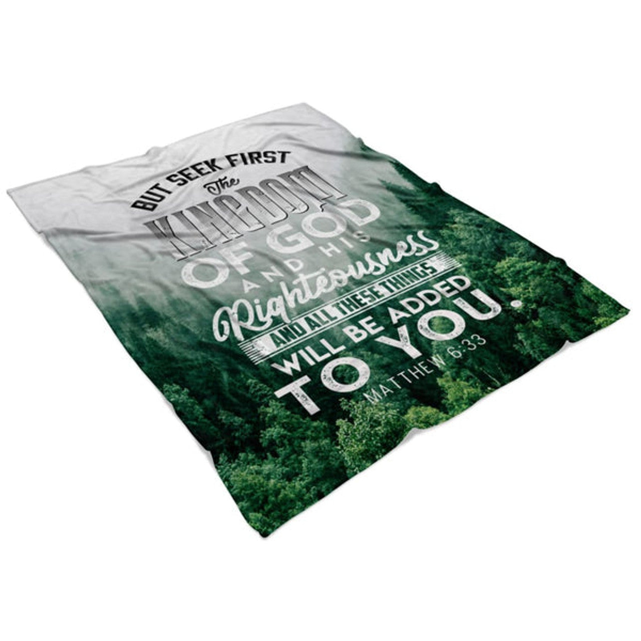 FUNSTUFFPRINT But Seek First The Kingdom Of God Matthew 633 Fleece Blanket - Christian Blanket - Bible Verse Blanket