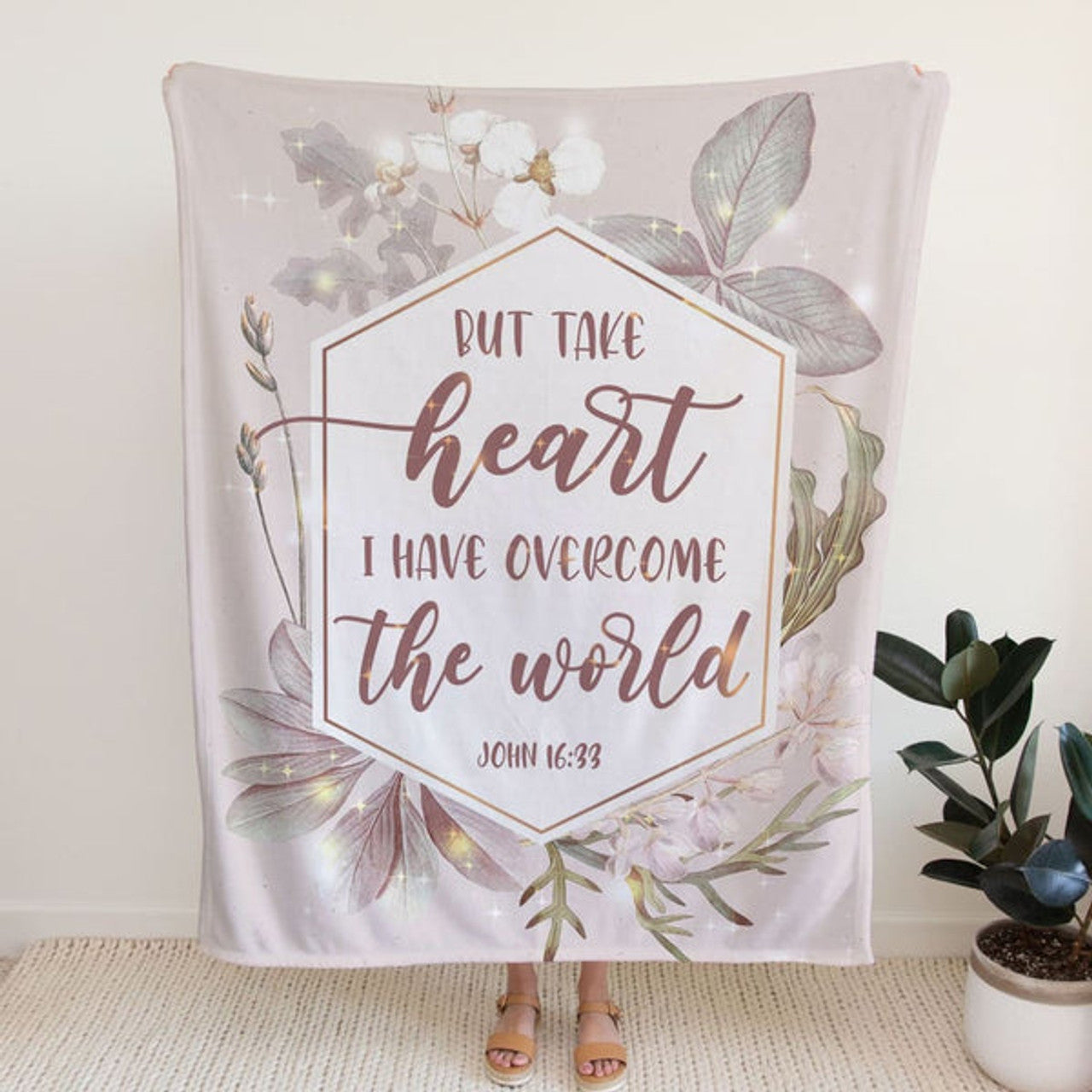 FUNSTUFFPRINT But Take Heart I Have Overcome The World John 1633 Fleece Blanket - Christian Blanket - Bible Verse Blanket