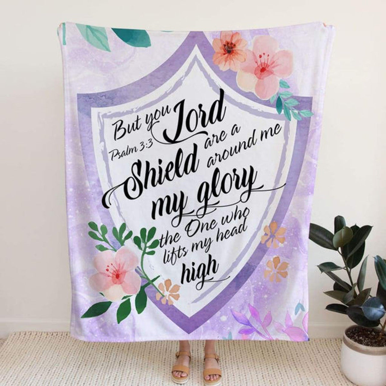 FUNSTUFFPRINT But You Lord Are A Shield Around Me Psalm 33 Fleece Blanket - Christian Blanket - Bible Verse Blanket