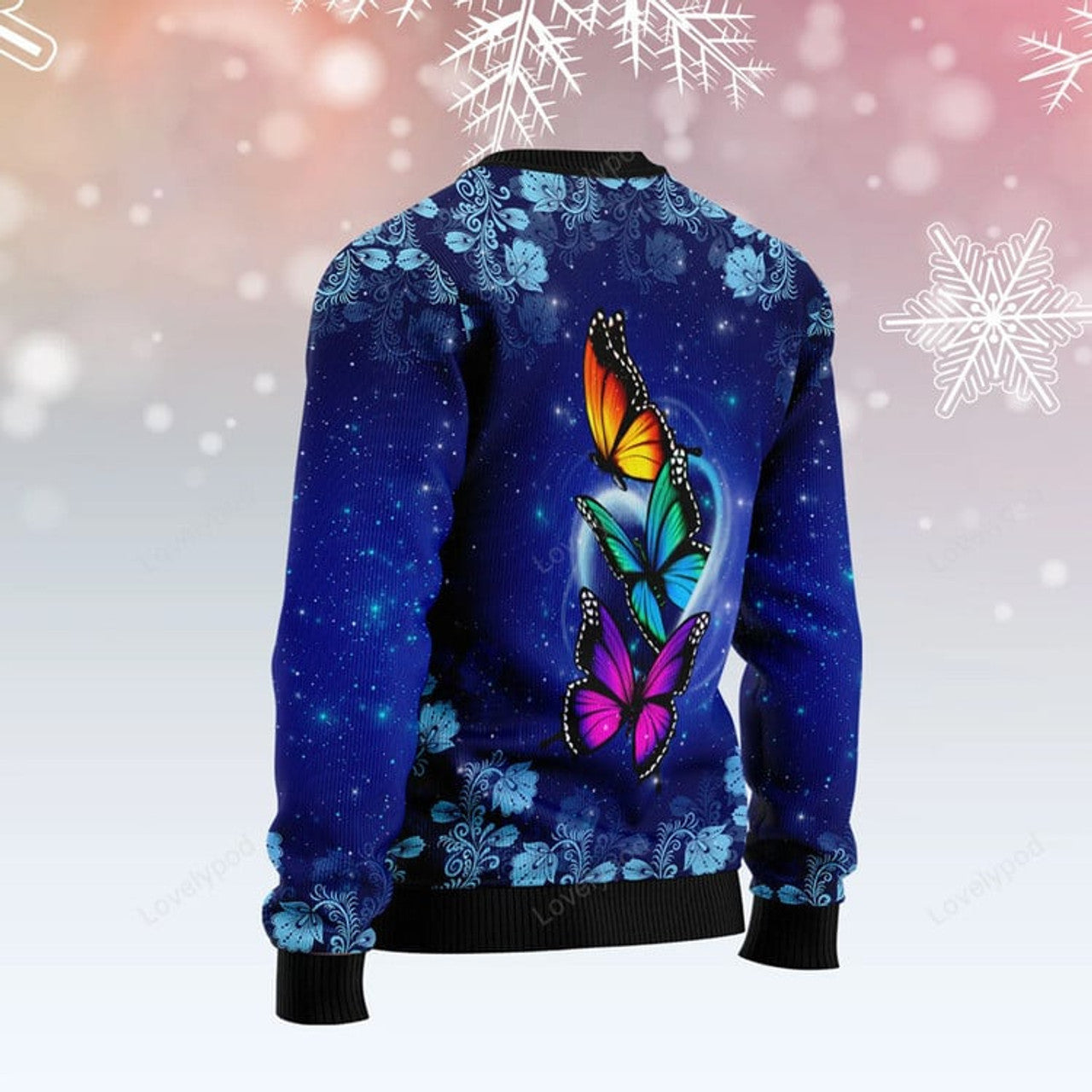 FUNSTUFFPRINT Butterfly Galaxy Ugly Christmas Sweater For Men & Women Ugly Sweater