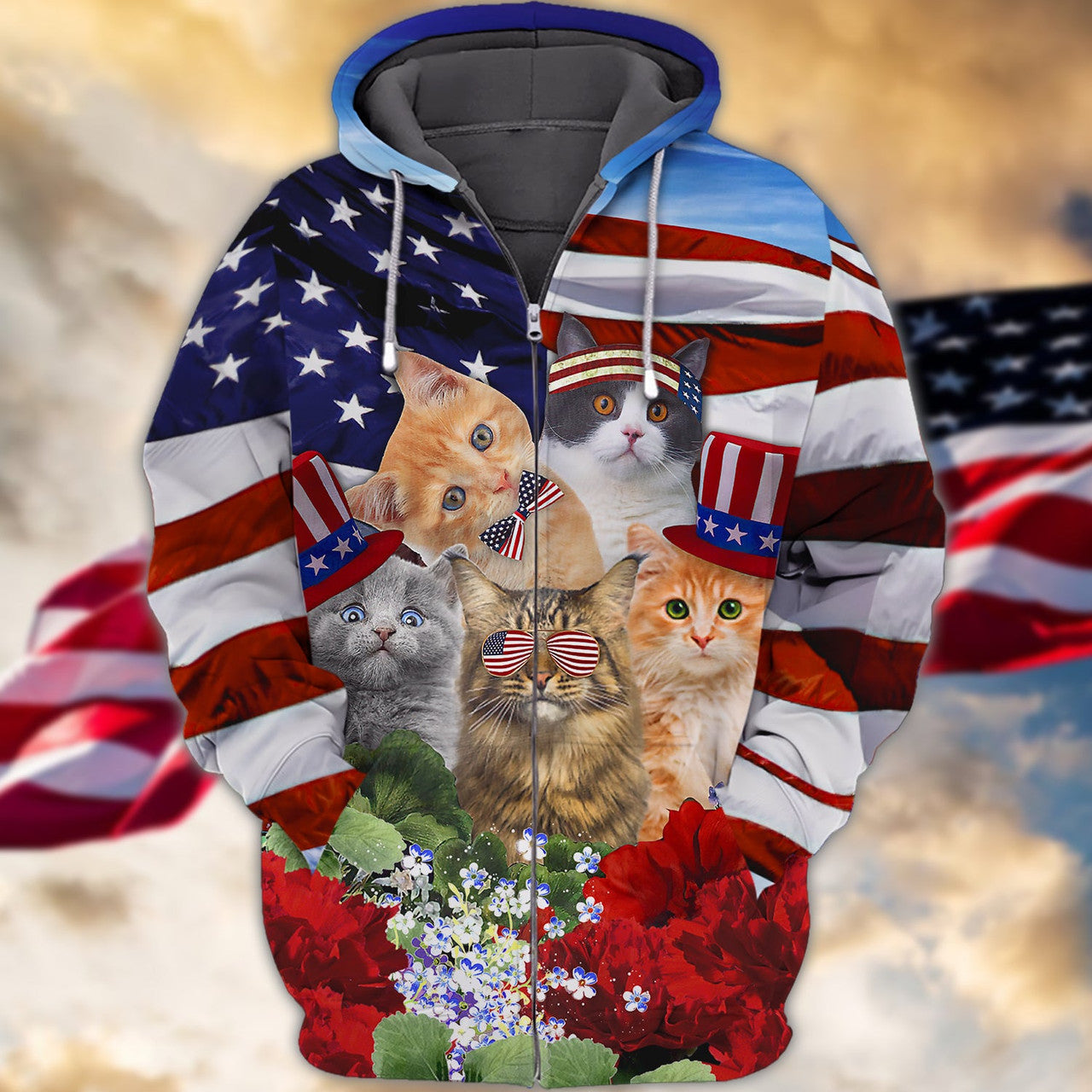 FUNSTUFFPRINT Cat - US Flag 3D Hoodie and Zip Hoodie