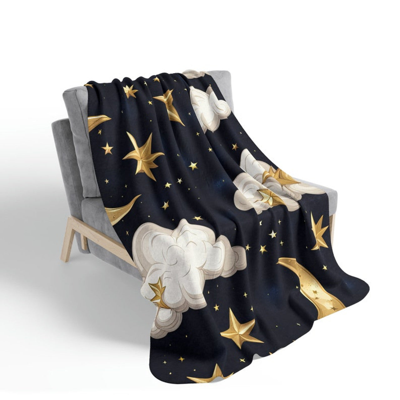 FUNSTUFFPRINT Celestial Moon & Stars Fleece Sherpa Throw Blanket, Moon Tapestry Aesthetic Blanket, Home Decor Gift, Housewarming Gift