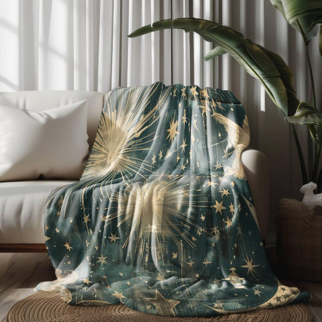 FUNSTUFFPRINT Celestial Mystical Velveteen Plush Blanket, Cute Moon Phases Throw Blanket,, Cozy Dark Academia Sherpa Fleece Blanket