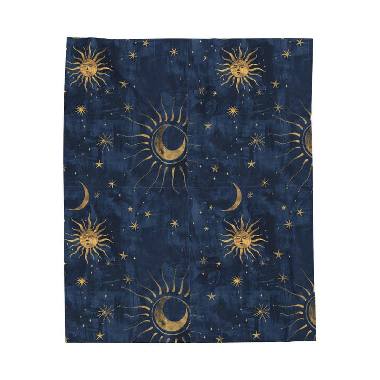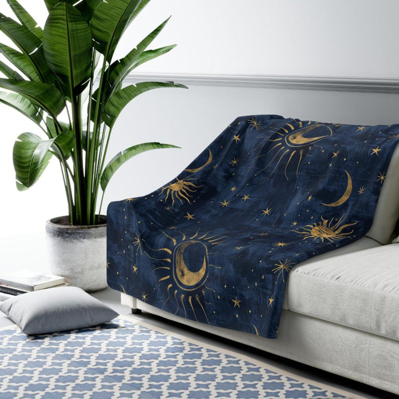 FUNSTUFFPRINT Celestial Starry Night Velveteen Plush Blanket, Cute Moon Phases Throw Blanket, Fall Home Decor, Cozy Dark Academia Sherpa Fleece Blanket