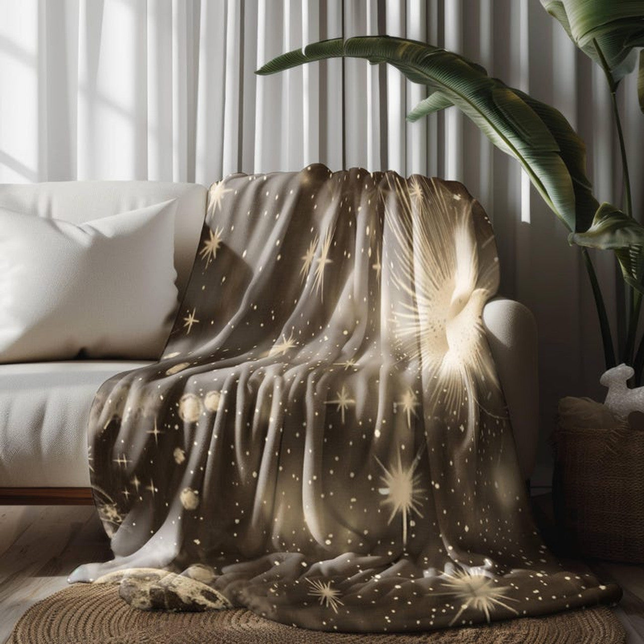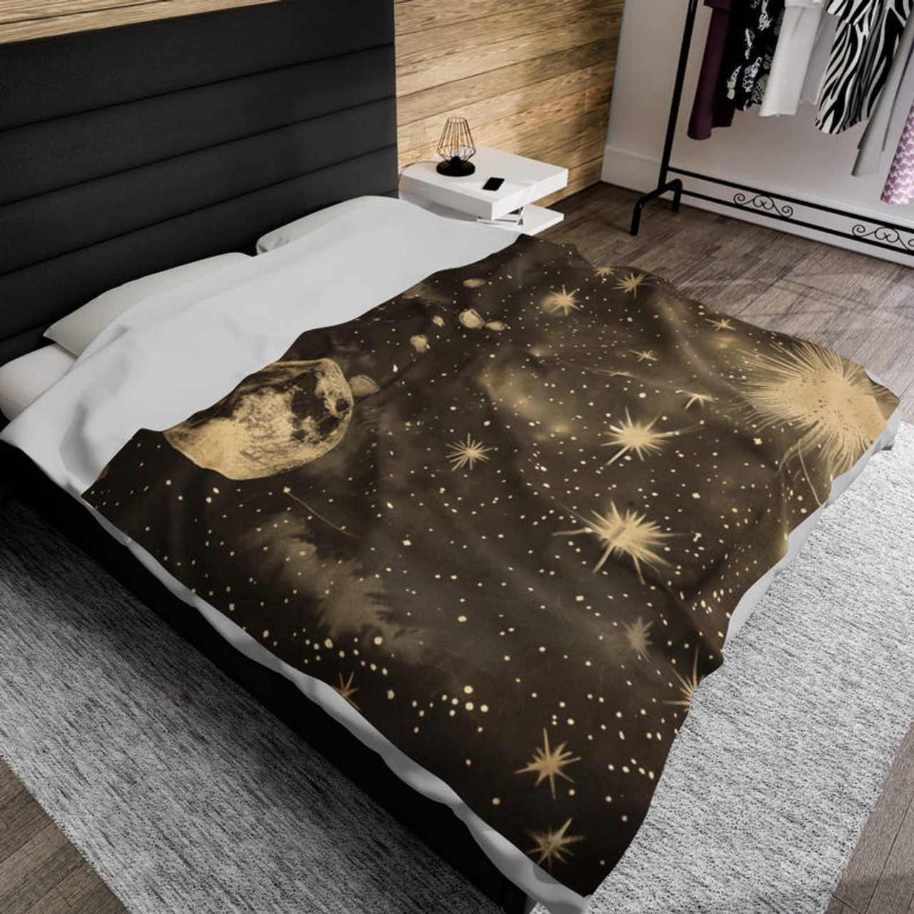 FUNSTUFFPRINT Celestial Velveteen Plush Blanket, Cute Moon Phases Throw Blanket, Fall Home Decor, Cozy Dark Academia Sherpa Fleece Blanket