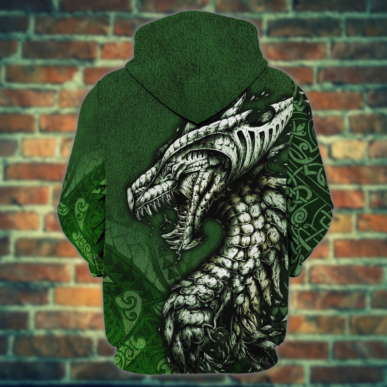 FUNSTUFFPRINT Celtic Dragon Tattoo Irish 3D Hoodie and Zip Hoodie