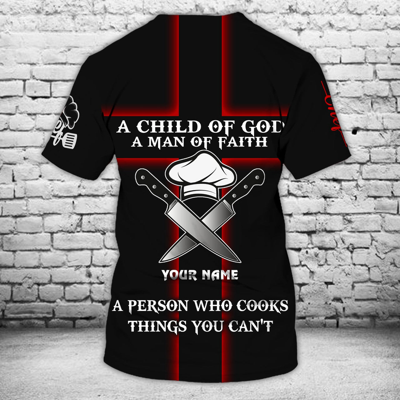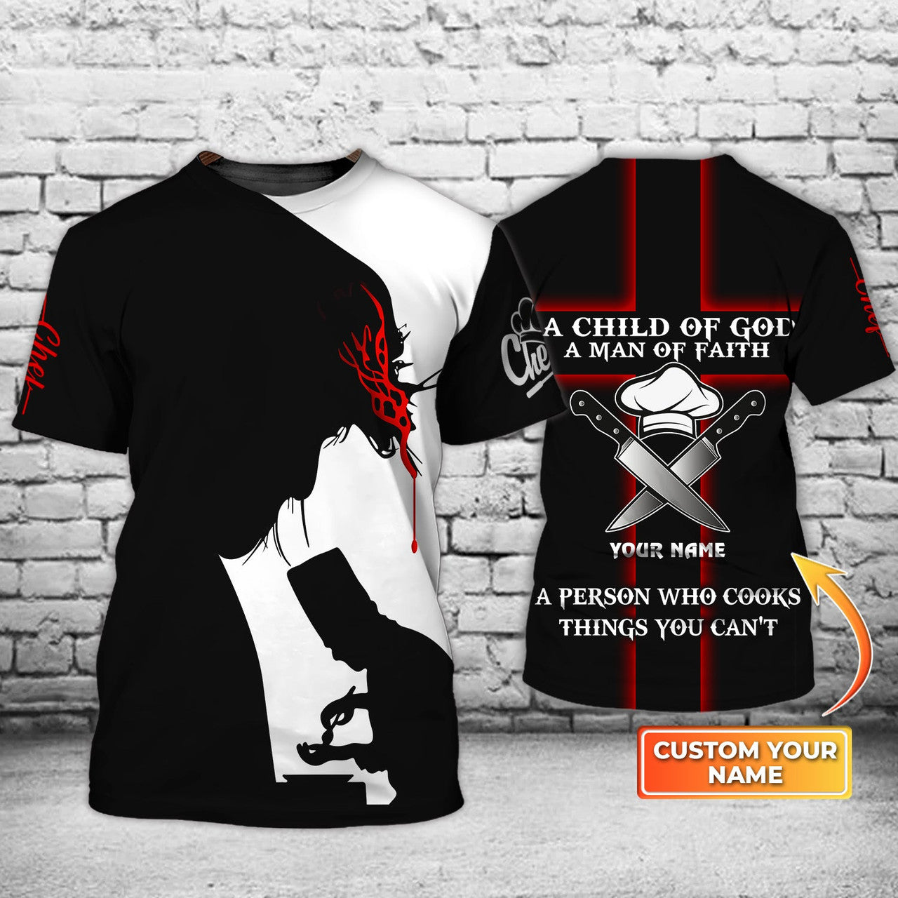 FUNSTUFFPRINT Chef, Jesus, Personalized Name 3D T-shirt