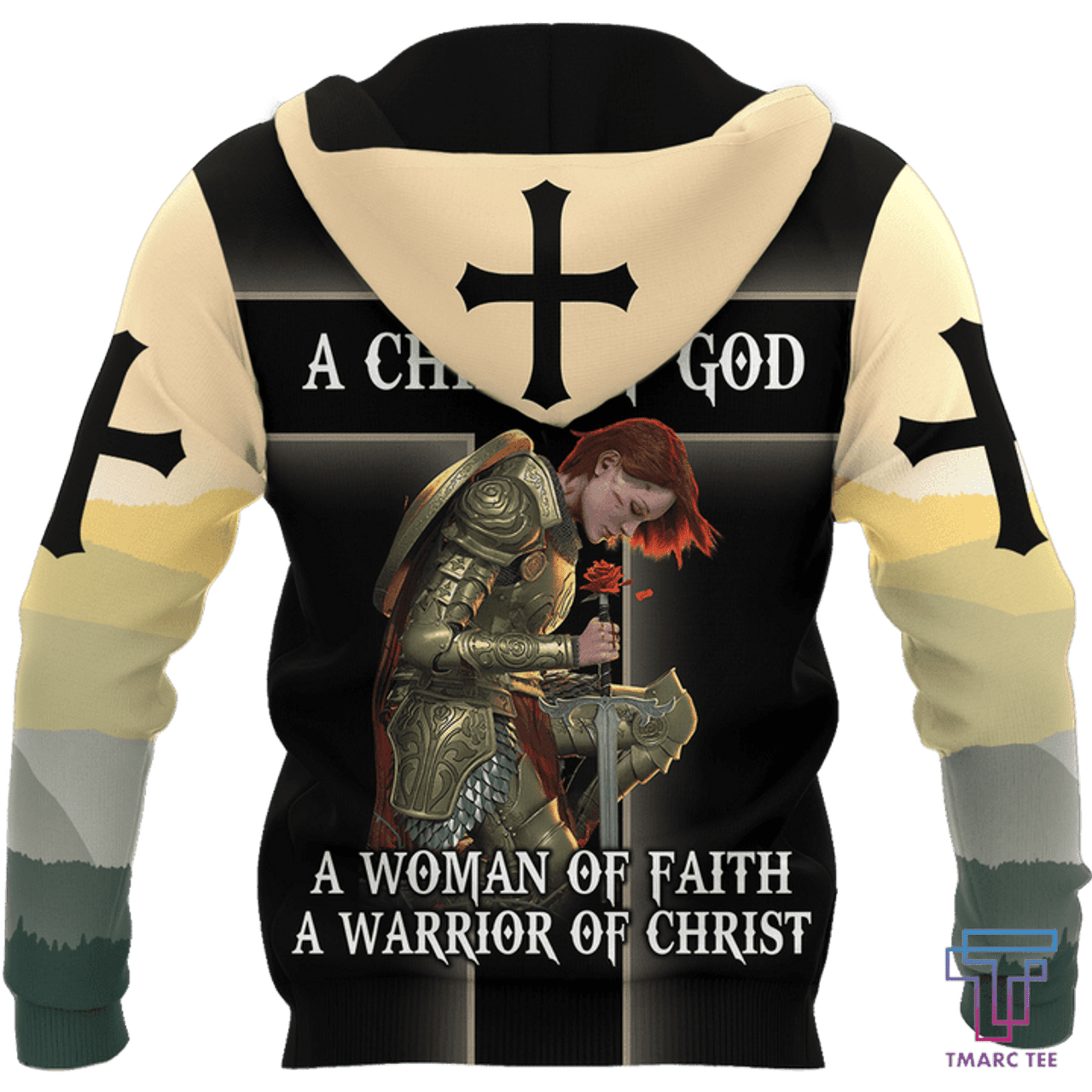 FUNSTUFFPRINT CHILD OF GOD A WOMAN OF FAITH A WARRIOR OF CHRIST 3D Hoodie and Zip Hoodie