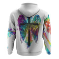 FUNSTUFFPRINT Christian 3D Hoodie Faith Cross Wings Colorful Watercolor White 3D Hoodie and Zip Hoodie