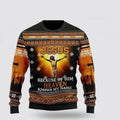 FUNSTUFFPRINT Christian Ugly Christmas Sweater, Jesus Because Of Him Heaven Knows My Name Ugly Christmas Sweater, Religious Christmas Sweaters Ugly Sweater