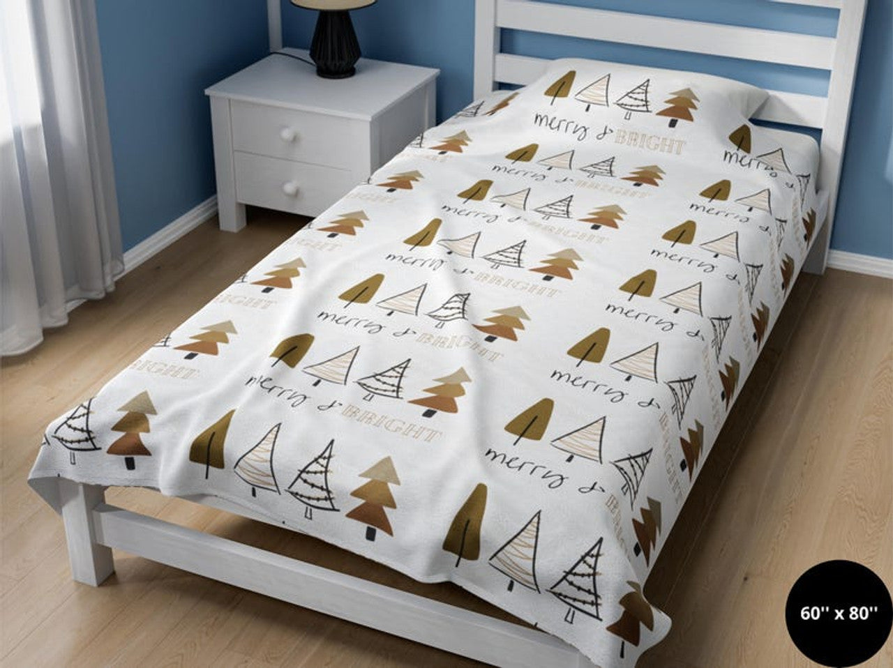 FUNSTUFFPRINT Christmas Blanket Christmas Tree Blanket |Merry & Bright| Christmas Home Decor| Fleece Throw| Sofa Blanket |Holiday Blanket |Christmas Gift