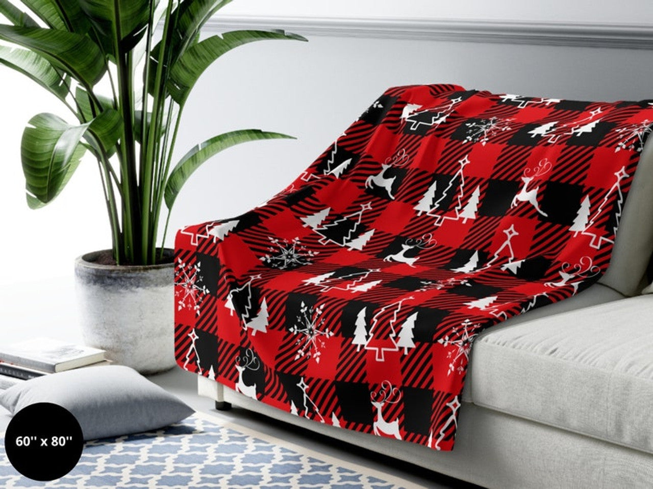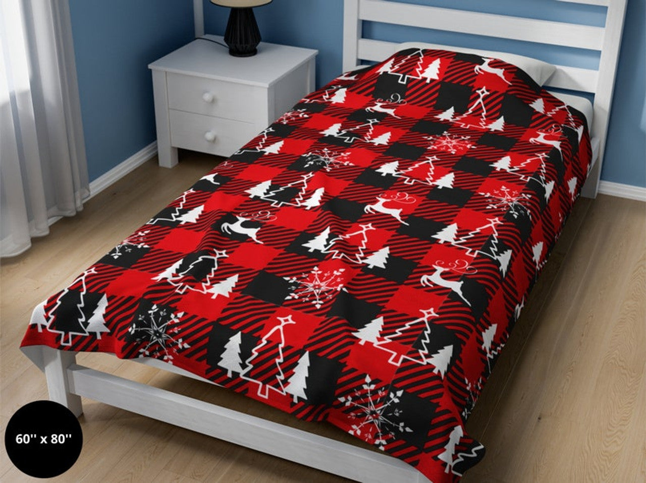 FUNSTUFFPRINT Christmas Blanket |Christmas Tree Home Decor |Red Christmas Plaid Fleece Blanket| Decorative Sofa Blanket |Holiday Blanket |Christmas Gift