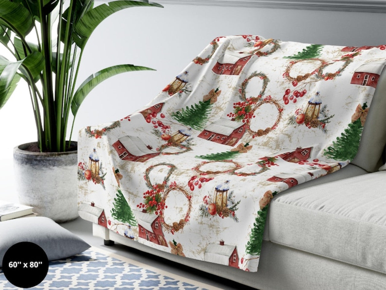 FUNSTUFFPRINT Christmas Blanket| Farmhouse Christmas Home Decor| Rustic Christmas Decor| Holiday Blanket| Home Living Room| Christmas Gift| Cabin Blanket