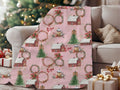 FUNSTUFFPRINT Christmas Blanket| Farmhouse Christmas Home Decor| Rustic Pink Christmas| Holiday Blanket| Home Living Room| Christmas Gift| Cabin Blanket