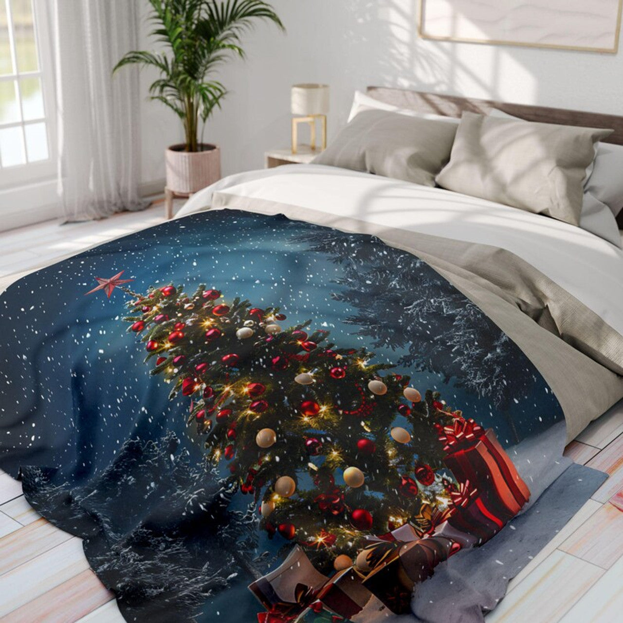 FUNSTUFFPRINT Christmas Tree Blanket Santa Arctic Fleece Blanket White Christmas Blanket Christmas Tree Blanket Christmas Gift for Her
