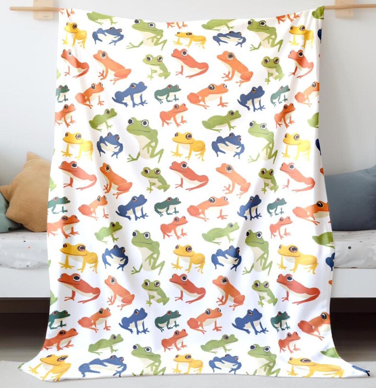 FUNSTUFFPRINT Colorful Frogs Baby Blanket, Baby Blanket, Sherpa Blanket, Baby Girl Swaddle Blanket, Velveteen Blanket, Baby Shower Gift, Baby Keepsake