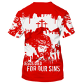 FUNSTUFFPRINT Cool Red Jesus Shirt Jesus Died For Our Sins 3D All Over Print T-Shirt Christmas God Shirts 3D T-shirt