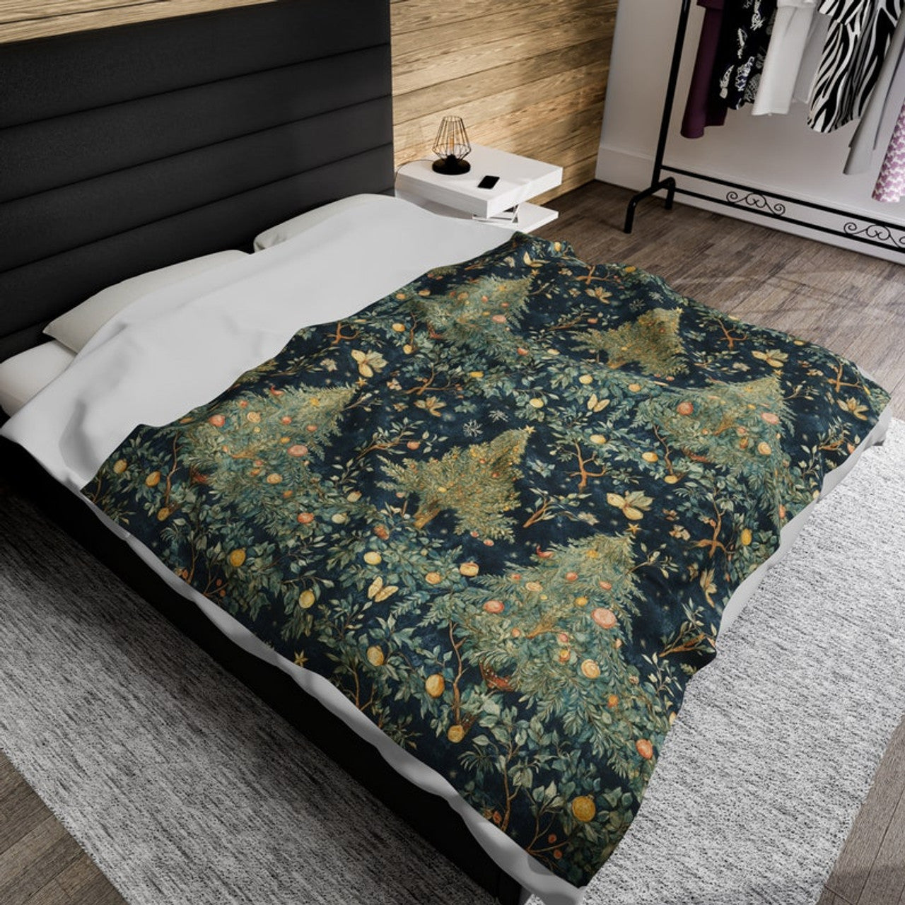 FUNSTUFFPRINT Cozy Christmas Tree Floral Blanket, Soft Velveteen Plush Throw, Winter Holiday Aesthetic Plush Blanket, Comfy Christmas Gift for Mom