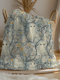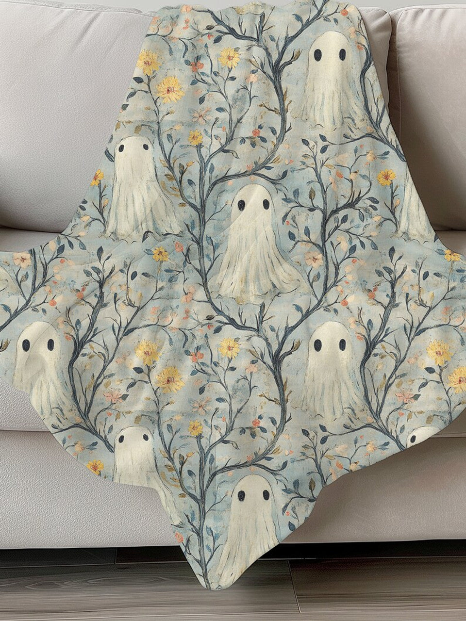 FUNSTUFFPRINT Cozy Ghost Halloween Blanket, Soft Aesthetic Fall Floral Velveteen Plush Throw, Comfy Gift for Her or Family, 3 Sizes