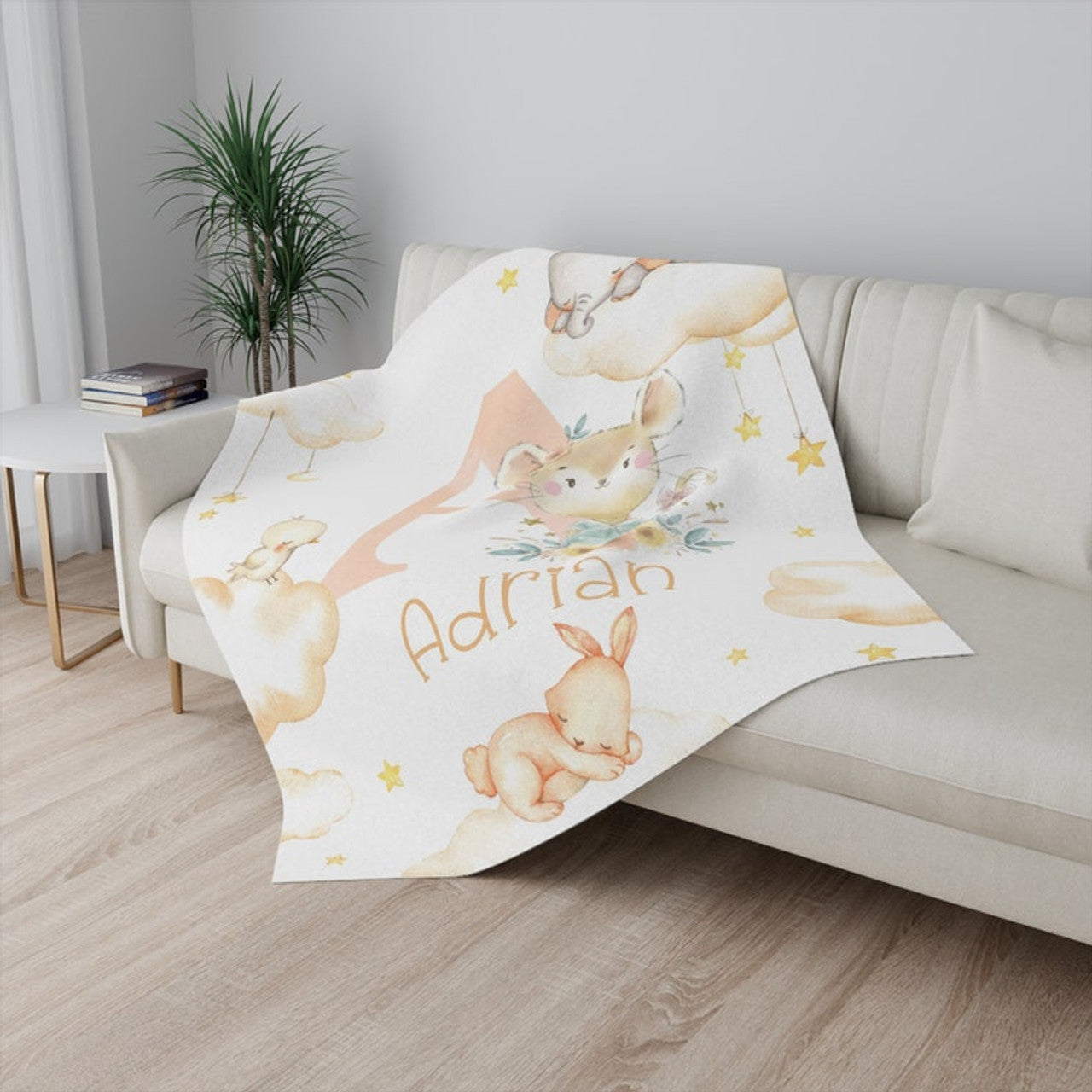 FUNSTUFFPRINT Custom Animal Alphabet Baby Blanket, Custom Alphabet Nursery Blanket, Floral Baby Boy Blanket, Personalized Baby Shower Gift Kids Blanket With Name