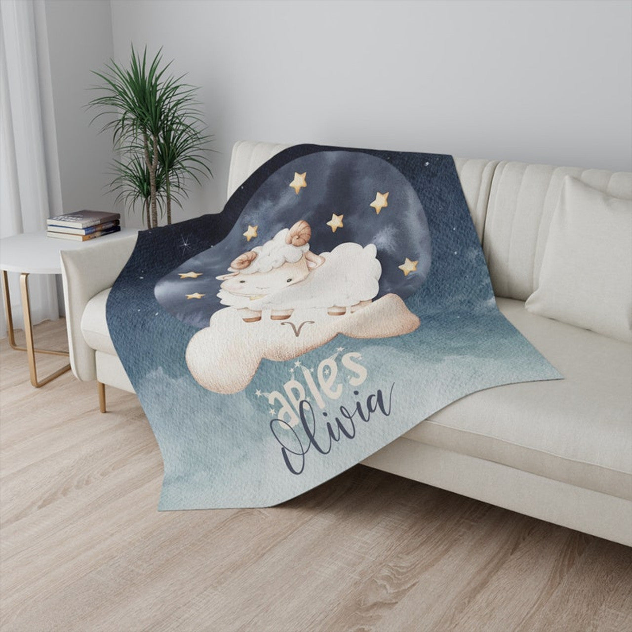 FUNSTUFFPRINT Custom Aries Zodiac Nursery Blanket Personalized Horoscope Baby Blanket Birthday Gift Celestial Blanket Kids Custom Name Blanket Baby Shower Gift