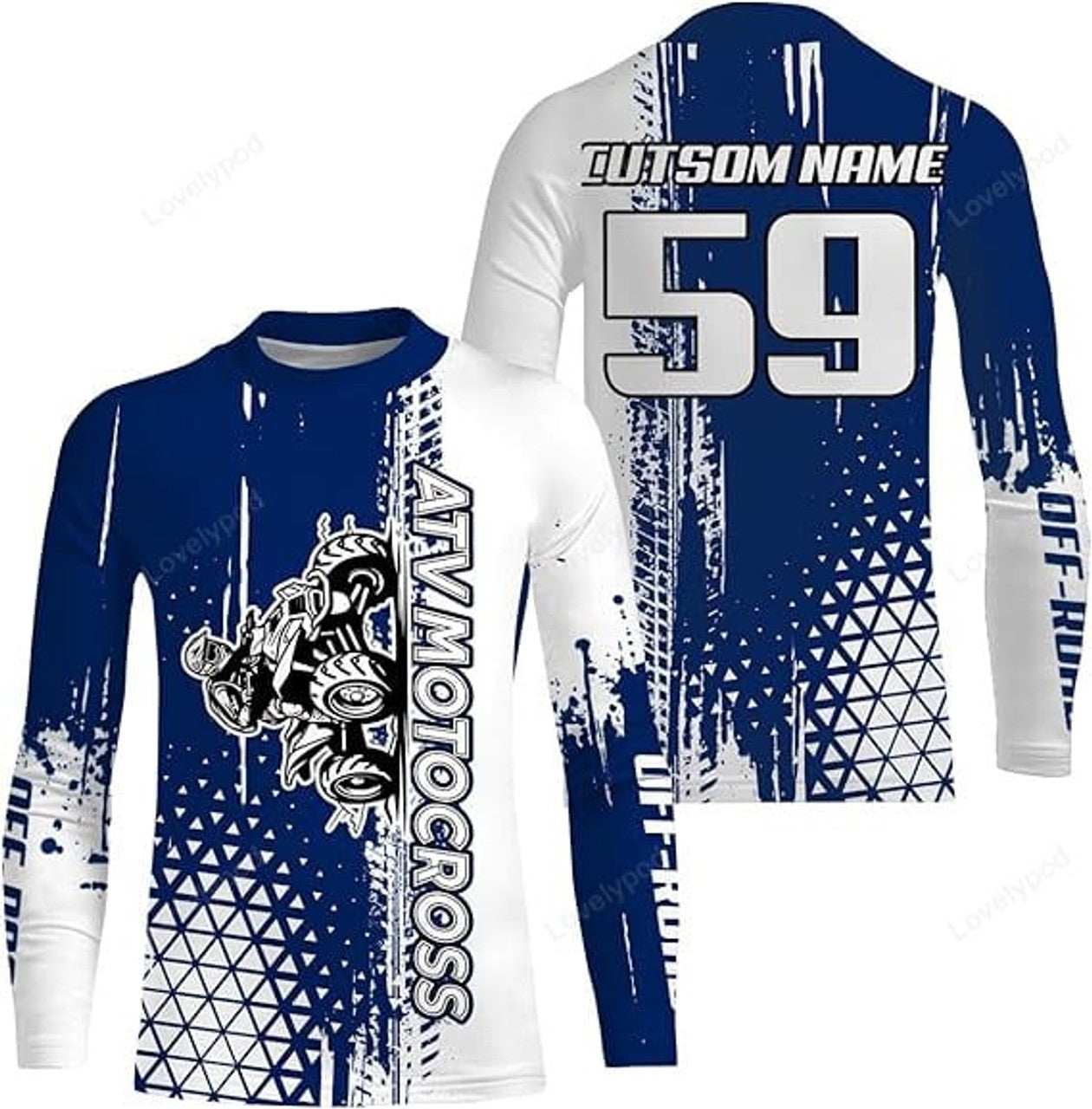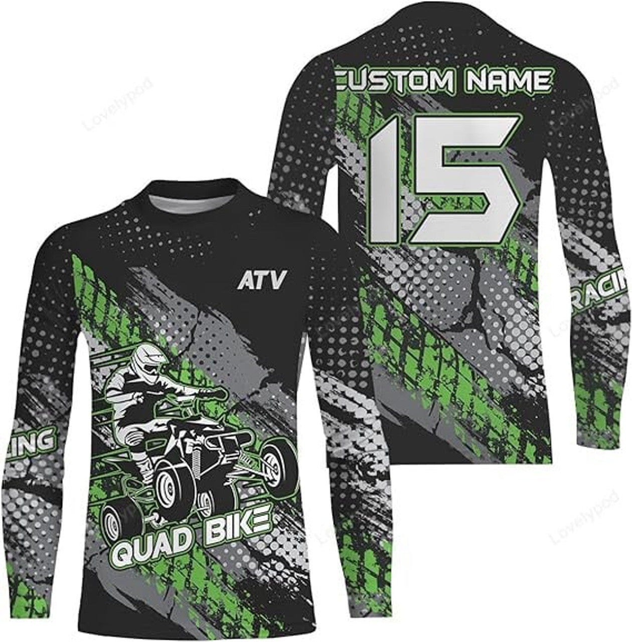 FUNSTUFFPRINT Custom ATV Motocross Jersey Men Women, Custom ATV Riding Shirt, Quad Bike Jersey ATV Off-Road MX Racing Jersey 3D Long Sleeve T-Shirt