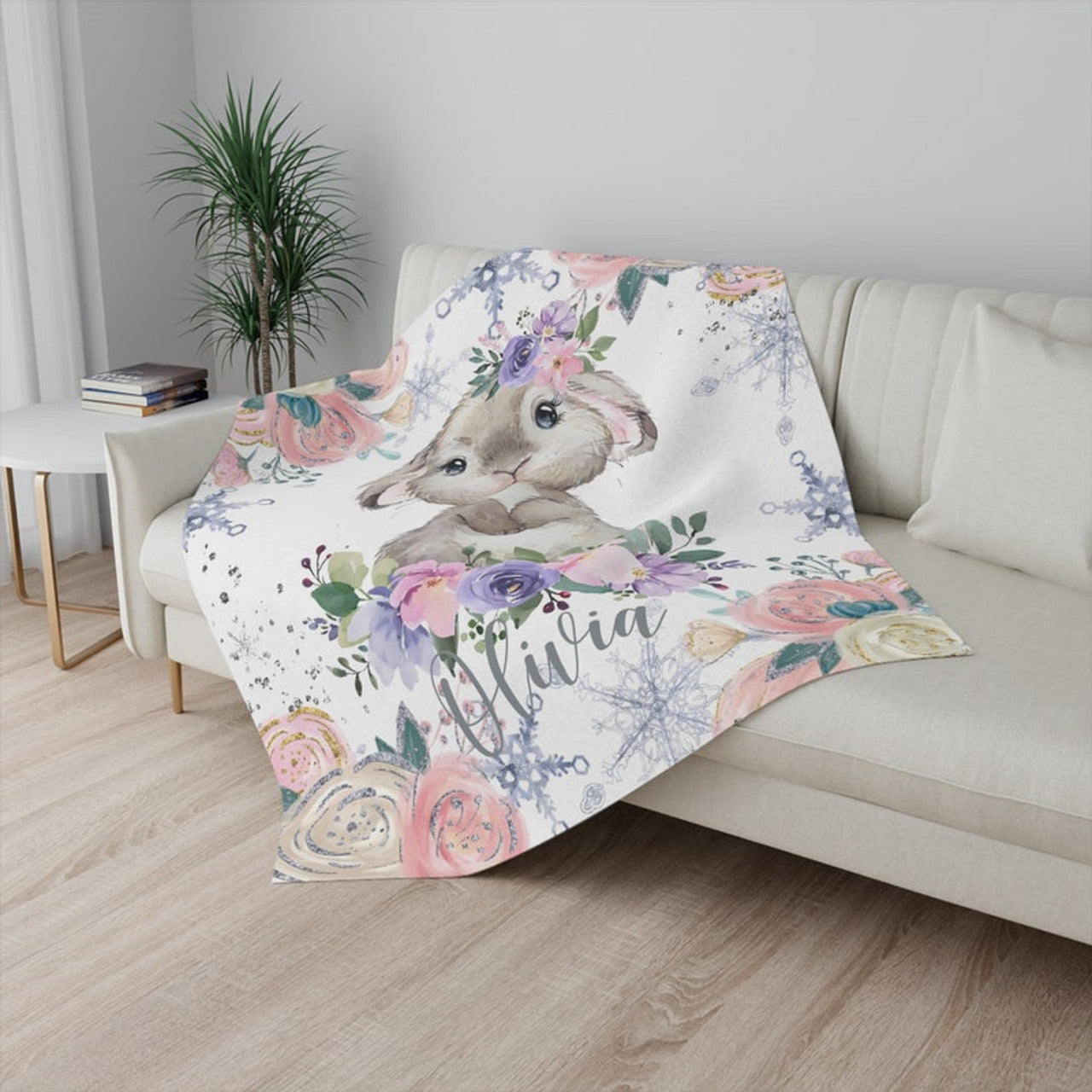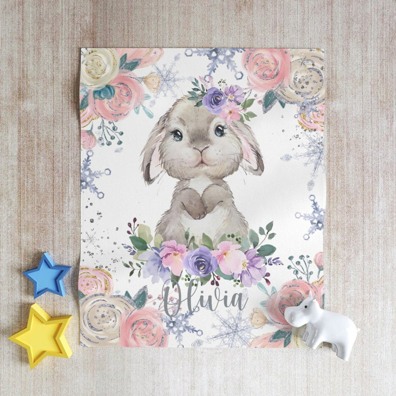 FUNSTUFFPRINT Custom Baby Bunny Blanket, Winter Floral Rabbit Nursery Blanket, Christmas Baby Blanket Kids Custom Blanket Jungle Baby Shower Gift