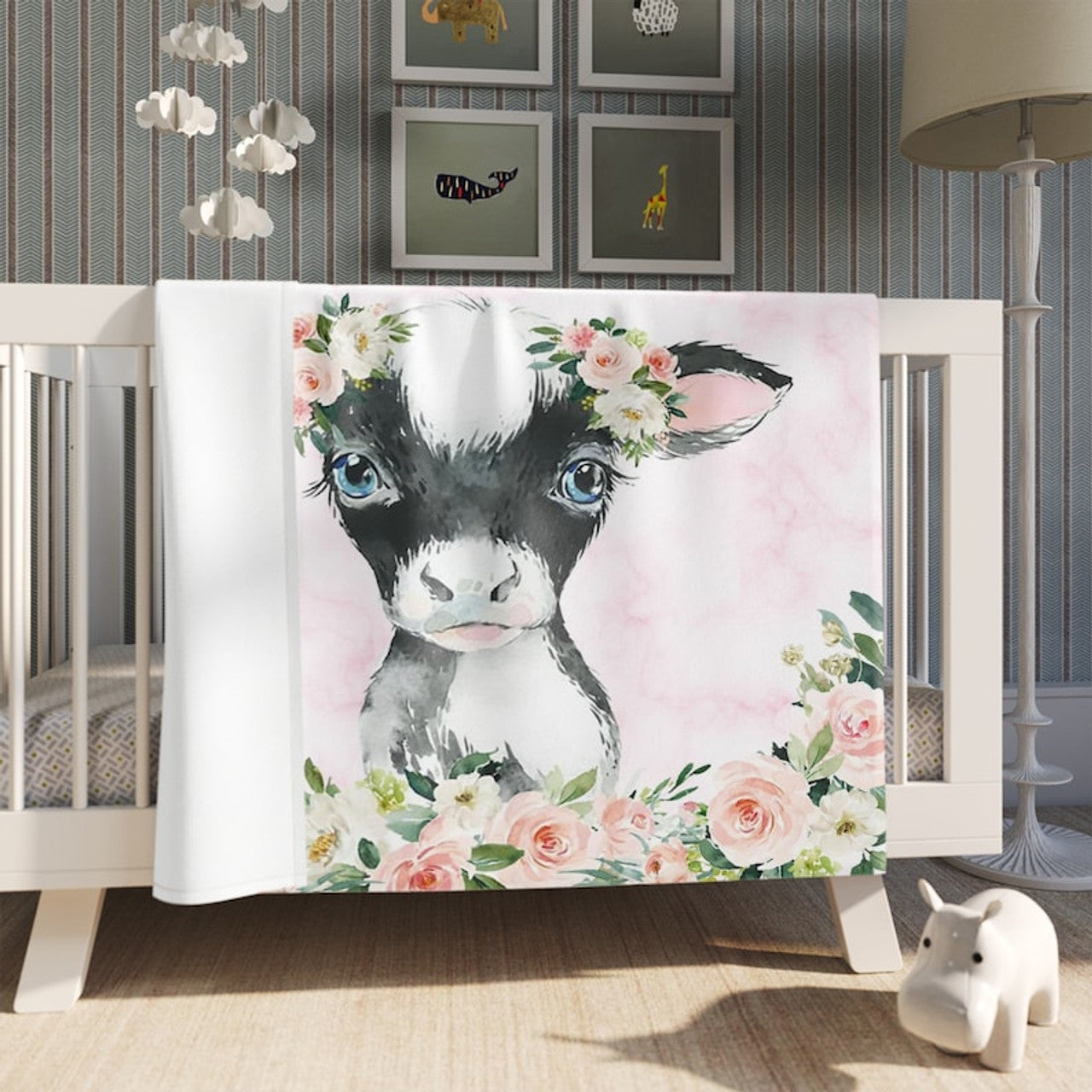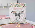 FUNSTUFFPRINT Custom Baby Cow Blanket, Pink Floral Cow Nursery Blanket, Rose Flowers Little Girl Blanket, Baby Shower Gift, Kids Custom Name Blanket
