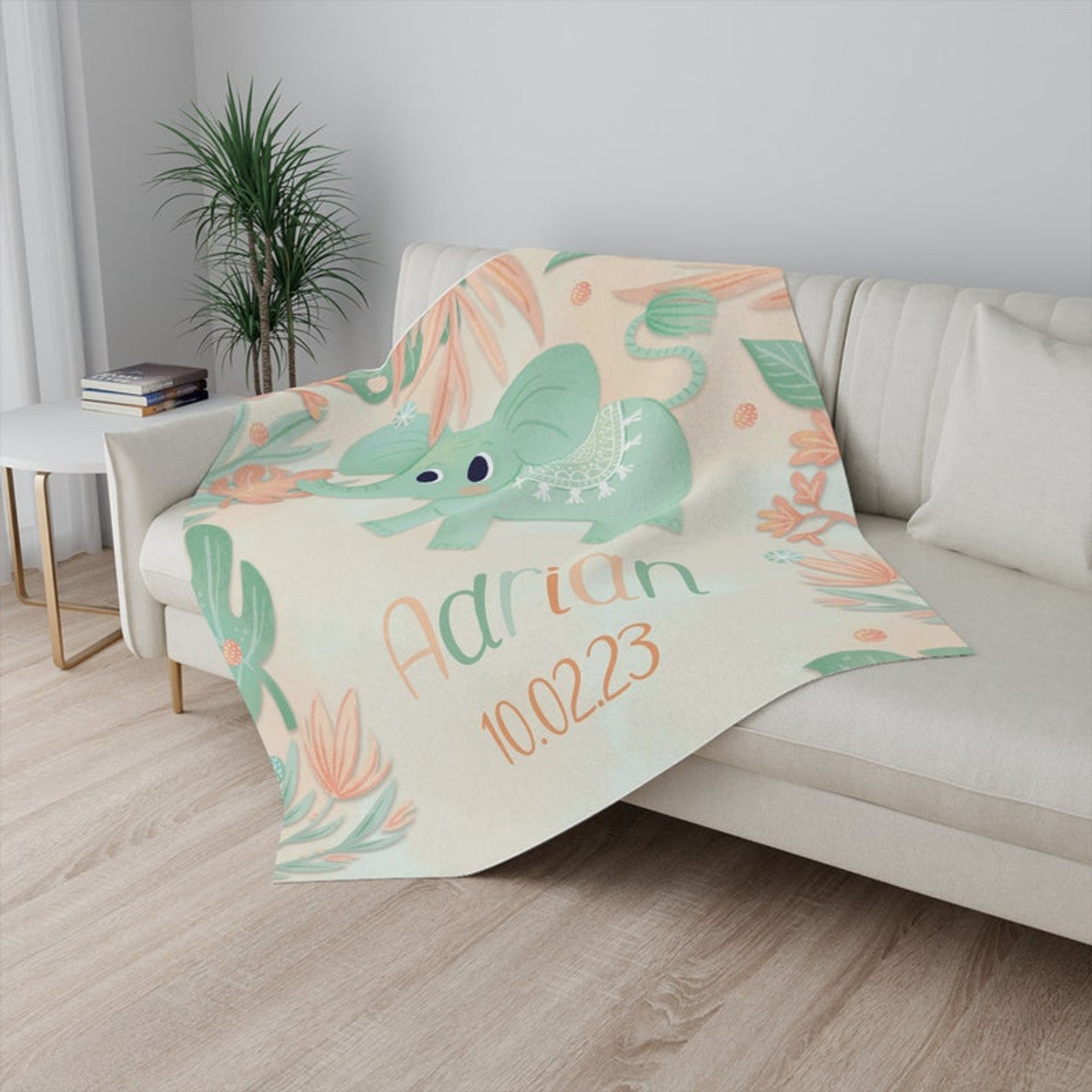 FUNSTUFFPRINT Custom Baby Elephant Blanket, Floral Elephant Nursery Blanket, First Christmas Baby Boy Blanket, Kids Custom Blanket, Baby Shower Gift
