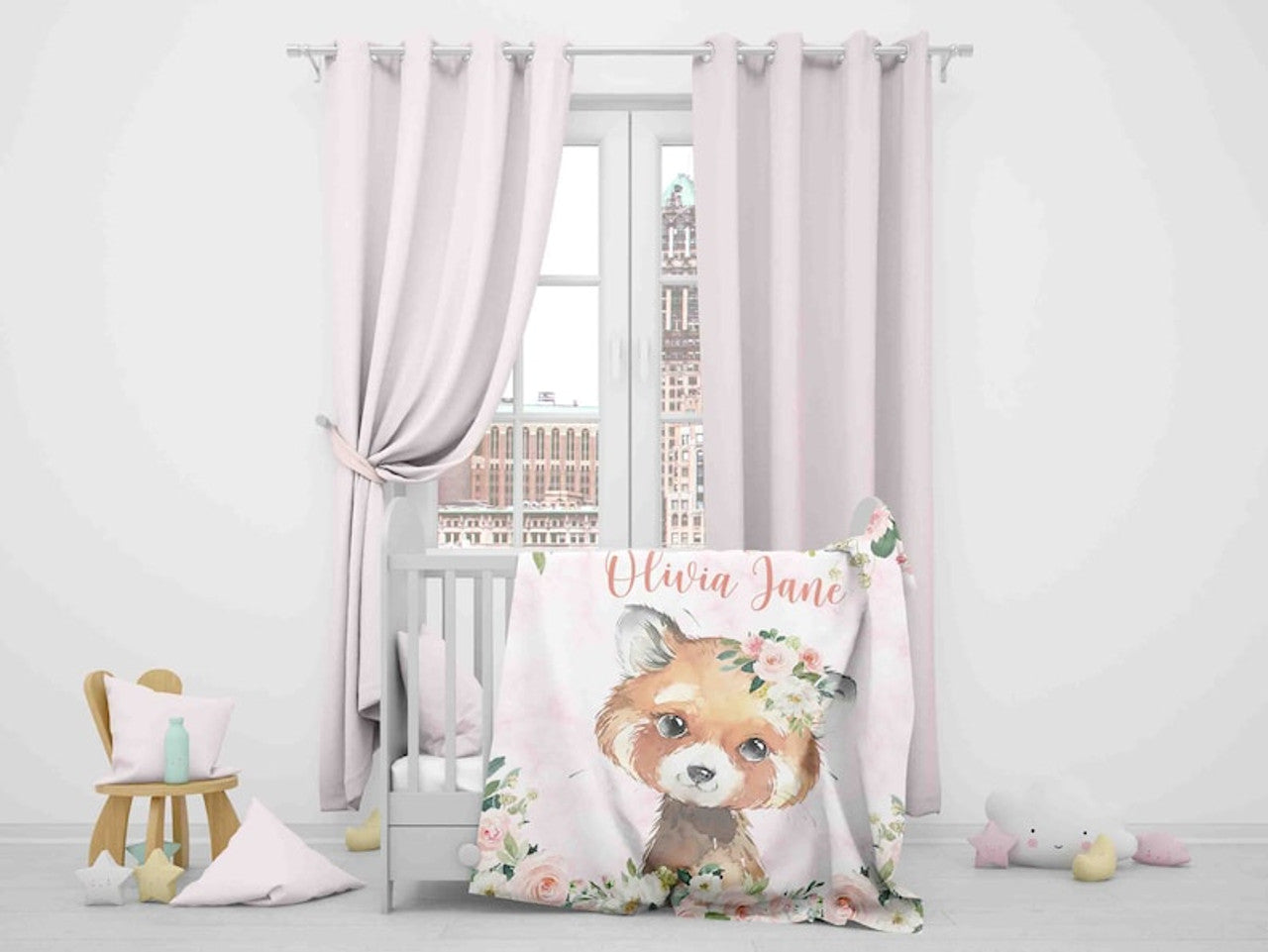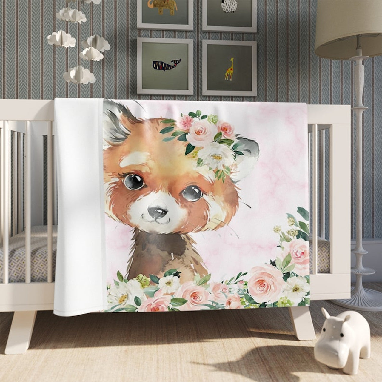 FUNSTUFFPRINT Custom Baby Red Panda Blanket, Pink Floral Panda Nursery Blanket, Rose Flowers Girl Blanket, Baby Shower Gift, Kids Custom Blanket
