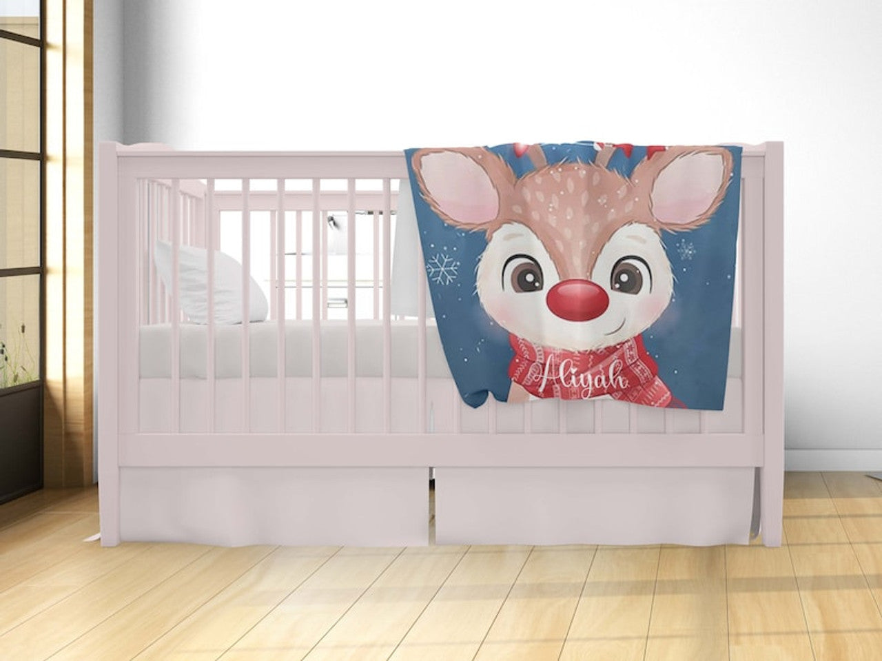 FUNSTUFFPRINT Custom Baby Reindeer Blanket, Christmas Nursery Blanket, Xmas Baby Blanket, Winter Holiday Christmas Gift, Baby Shower Gift, Kids Name Blanket
