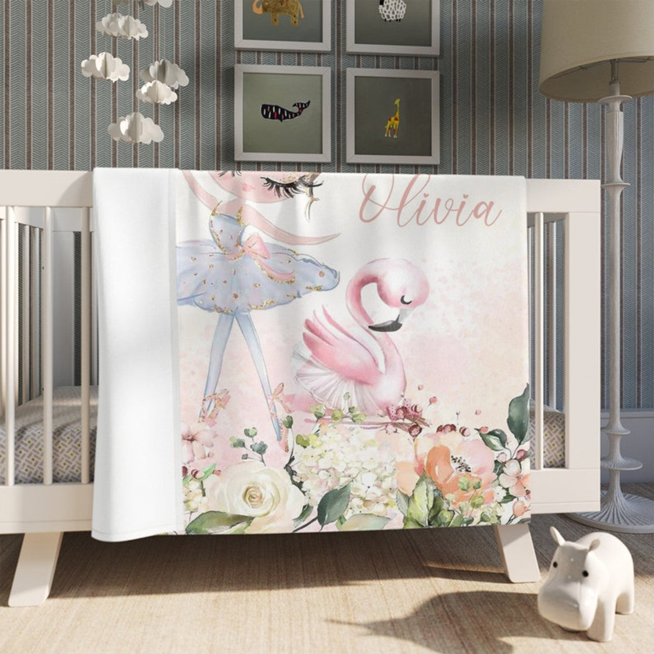 FUNSTUFFPRINT Custom Ballet Girl Nursery Blanket, Ballerina Blanket, Personalized Dancer Gift, Flowers Baby Blanket, Kids Custom Blanket, Floral Baby Shower Gift