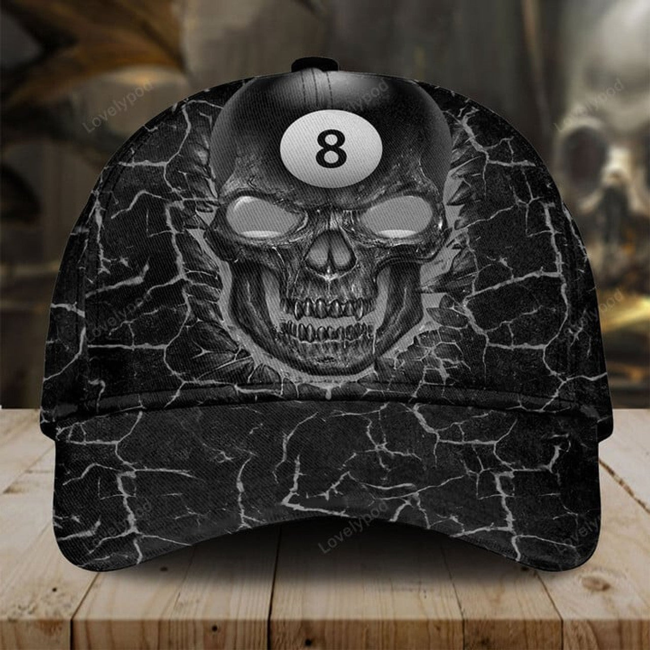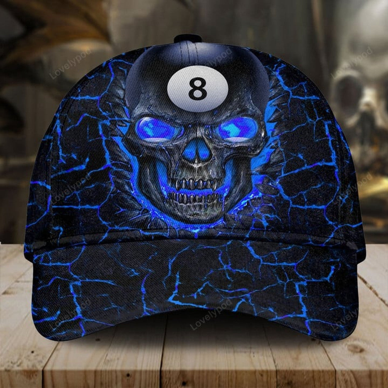FUNSTUFFPRINT Custom Billiards Skull Fire Multi color Classic Cap, Billiards hat for men, Gift for Billiards player