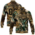 FUNSTUFFPRINT Custom Black Black-Old Gold Hawaii Palm Trees 3D Bomber Full-Snap Varsity Letterman Jacket 3D Baseball Jacket
