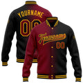 FUNSTUFFPRINT Custom Black Crimson-Gold Bomber Full-Snap Varsity Letterman Gradient Fashion Jacket 3D Baseball Jacket