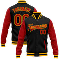FUNSTUFFPRINT Custom Black Red-Gold Bomber Full-Snap Varsity Letterman Two Tone Jacket 3D Baseball Jacket