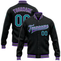 FUNSTUFFPRINT Custom Black Teal Pinstripe Purple Bomber Full-Snap Varsity Letterman Jacket 3D Baseball Jacket