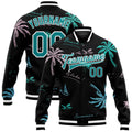 FUNSTUFFPRINT Custom Black Teal-White Hawaii Palm Trees 3D Bomber Full-Snap Varsity Letterman Jacket 3D Baseball Jacket