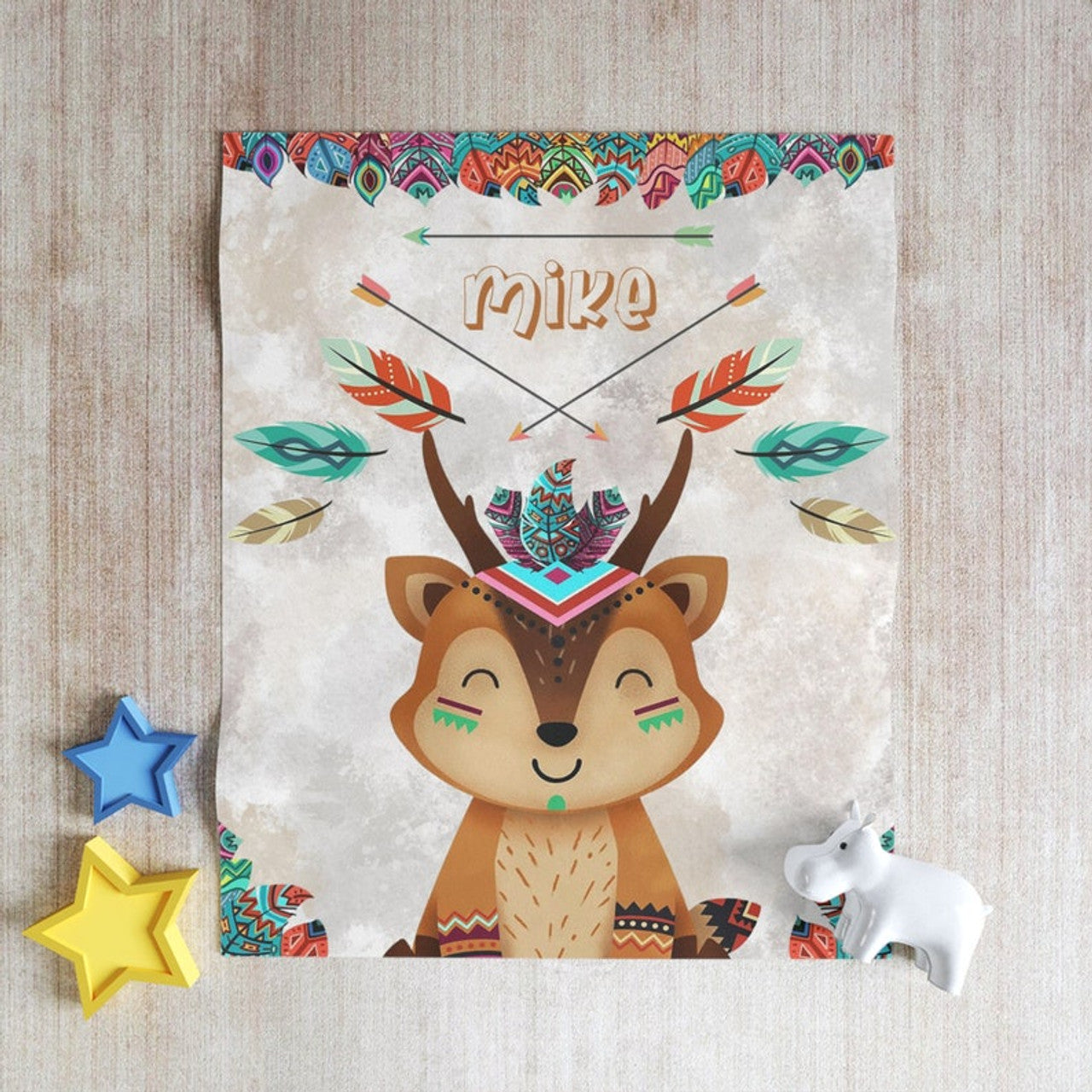 FUNSTUFFPRINT Custom Boho Deer Nursery Blanket, Custom Kids Blanket, Personalized Baby Boy Blanket, Woodland Forest Toddler Blanket, Safari Baby Shower Gift