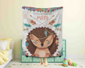 FUNSTUFFPRINT Custom Boho Hedgehog Nursery Blanket, Personalized Baby Boy Blanket, Woodland Forest Toddler Blanket, Custom Kids Blanket, Safari Baby Shower Gift