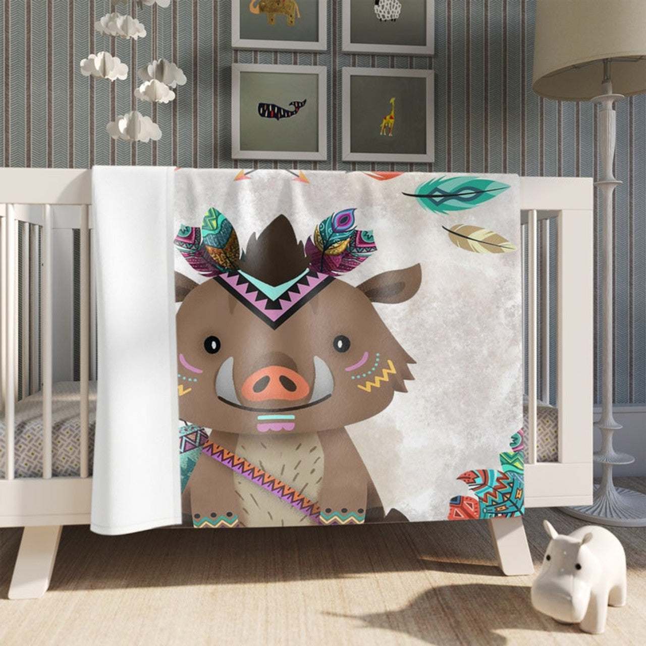 FUNSTUFFPRINT Custom Boho Piggy Nursery Blanket, Personalized Baby Boy Blanket, Woodland Forest Toddler Blanket, Custom Kids Blanket, Safari Baby Shower Gift