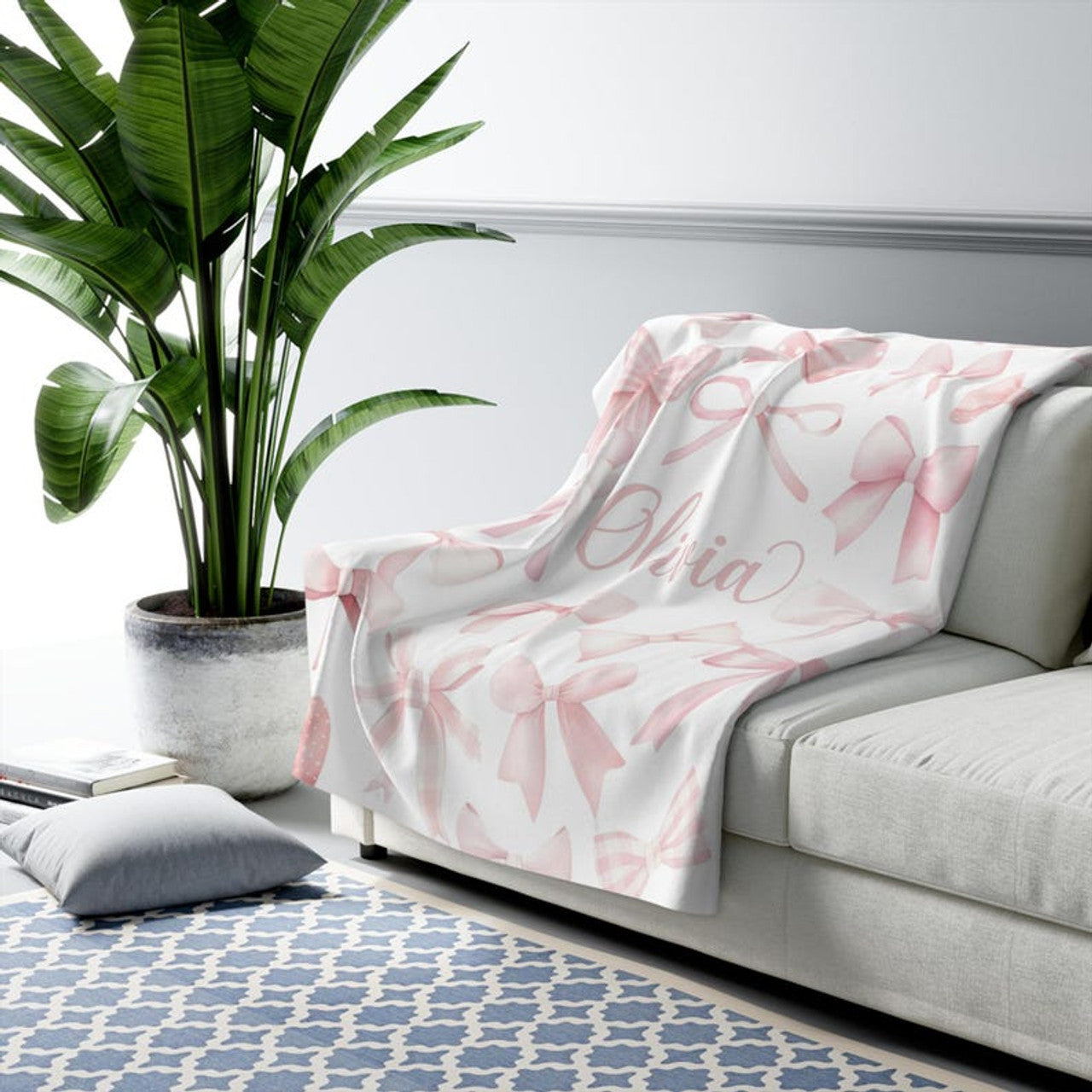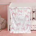 FUNSTUFFPRINT Custom Bow Nursery Blanket Coquette Custom Baby Name Blanket Kids Custom Name Blanket Baby Girl Gift For Daughter