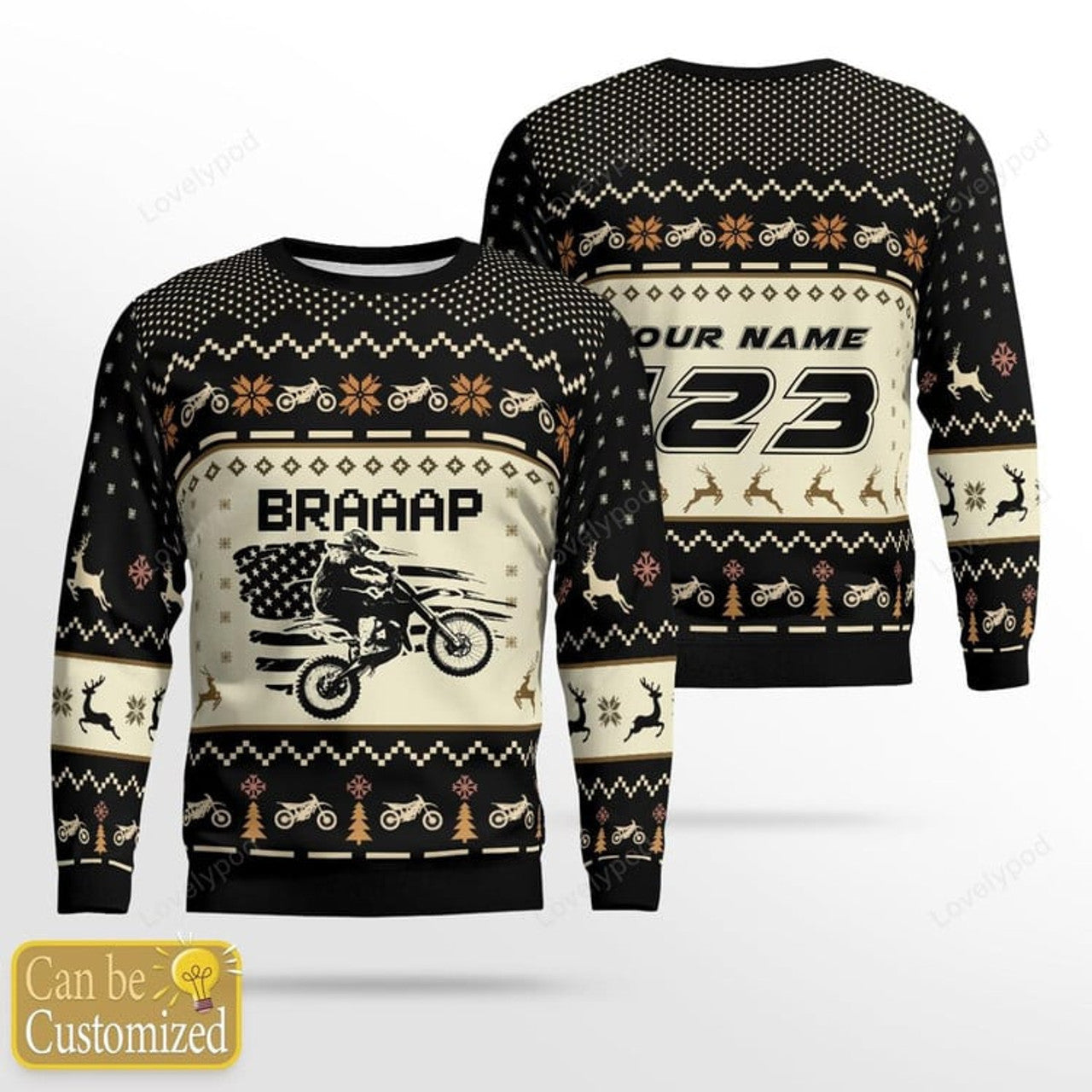 FUNSTUFFPRINT Custom Braaap Christmas Motocross rider black Ugly Christmas sweater for men, Motocross biker sweatshirt, gift for motocross lover Ugly Sweater