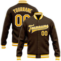 FUNSTUFFPRINT Custom Brown Gold-White Bomber Full-Snap Varsity Letterman Jacket 3D Baseball Jacket