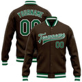 FUNSTUFFPRINT Custom Brown Kelly Green-White Bomber Full-Snap Varsity Letterman Jacket 3D Baseball Jacket