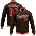 FUNSTUFFPRINT Custom Brown Red-White Bomber Full-Snap Varsity Letterman Jacket 3D Baseball Jacket