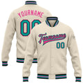 FUNSTUFFPRINT Custom Cream Aqua Black-Pink Bomber Full-Snap Varsity Letterman Jacket 3D Baseball Jacket